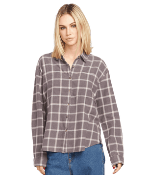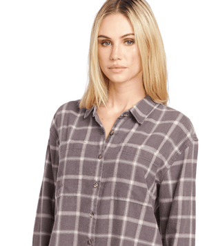 VOLCOM Women's Plaid To Meet U 2 Long Sleeve Shirt Dark Grey Women's Flannels and Button Ups Volcom