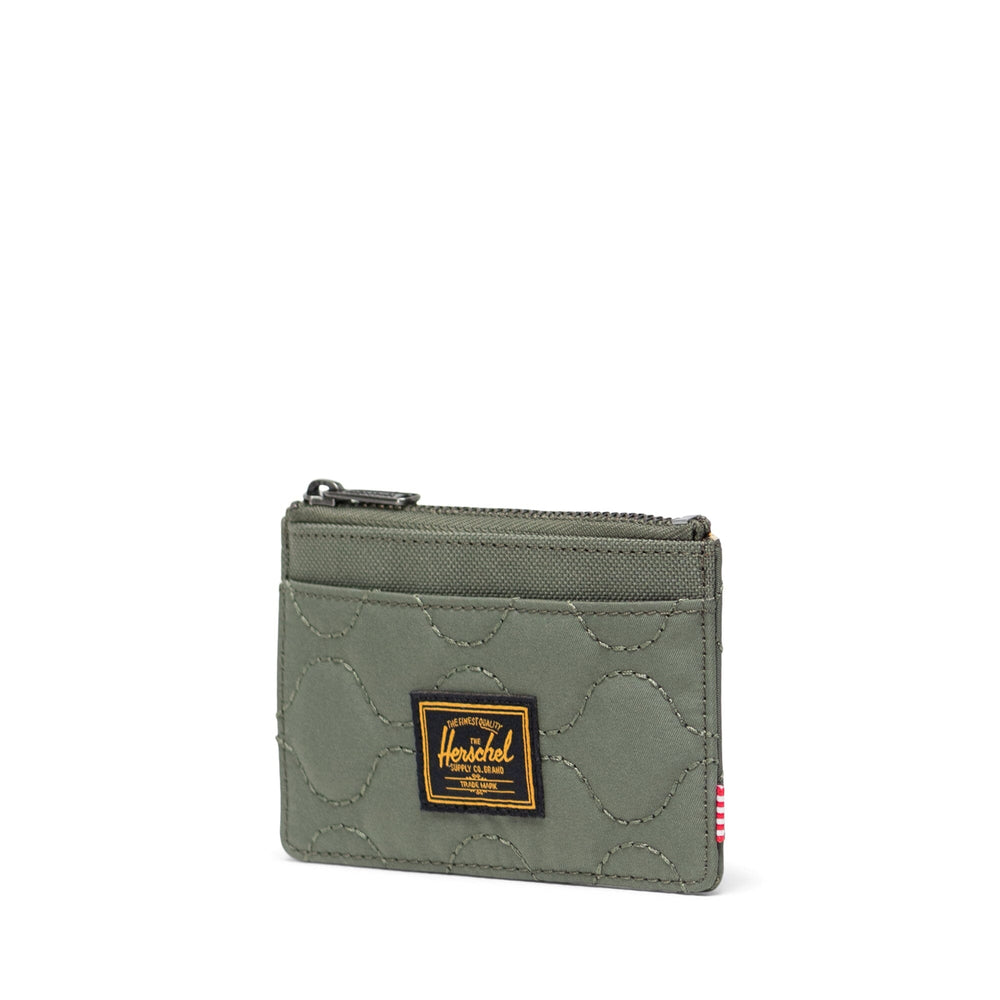 Timeless quilting. The Oscar Cardholder is reimagined with lightly padded onion quilting inspired by tactical gear and vintage bomber jackets. It features slots for cards, ID, passes and a zippered compartment for your cash.