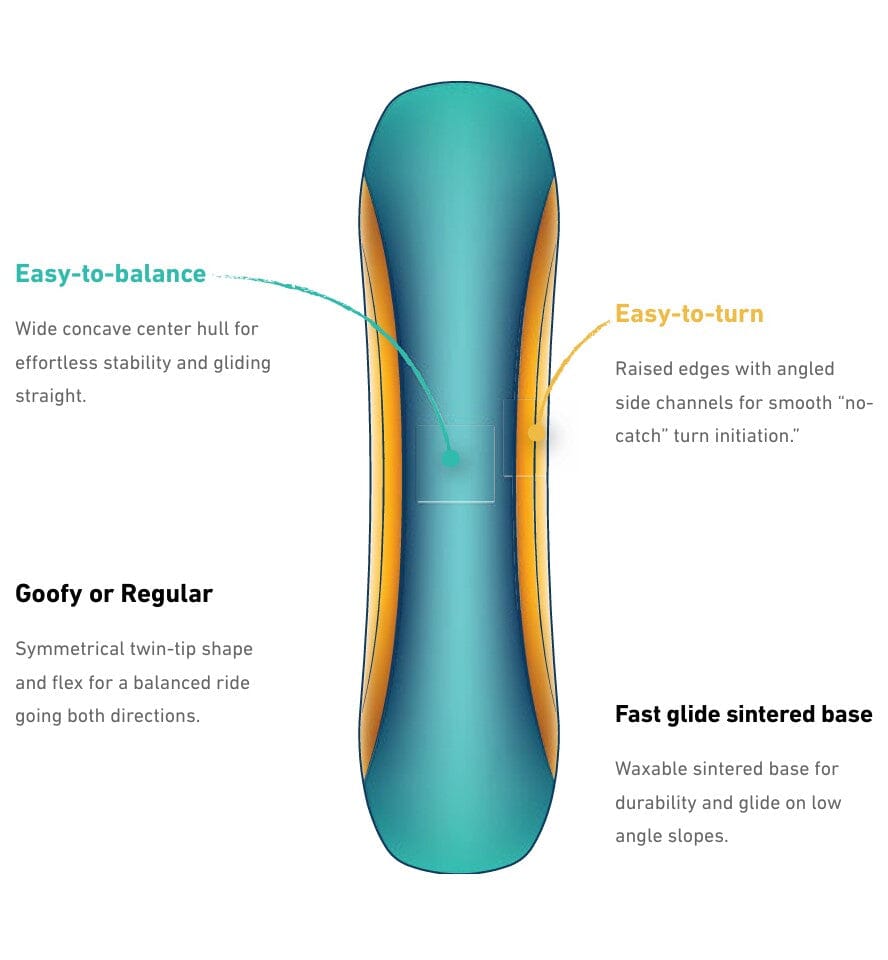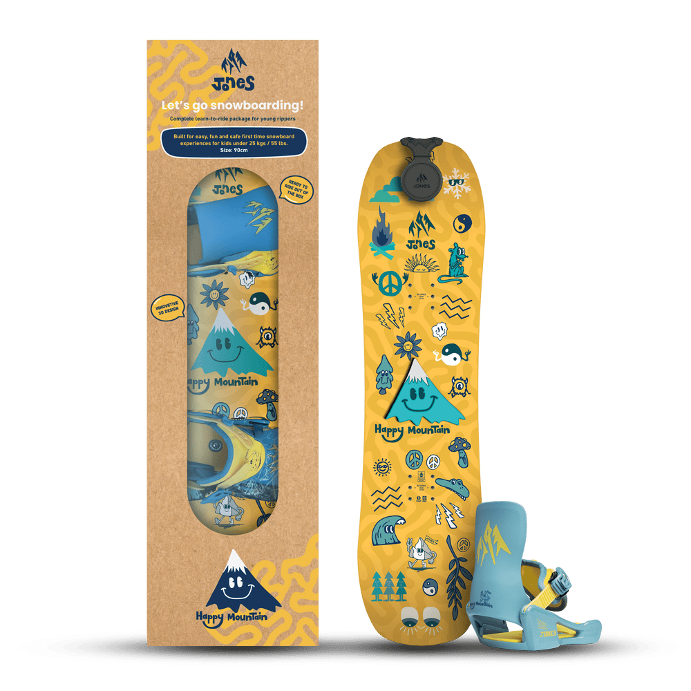 The Happy Mountain is a complete board and binding package made to get young rippers sliding and gliding with ease. The board features an innovative 3D base for stability and comes ready-to-ride right out of the box with pre-mounted bindings. The board also includes a retractable tow reel for towing your lil’ shredder uphill and controlling their speed downhill.