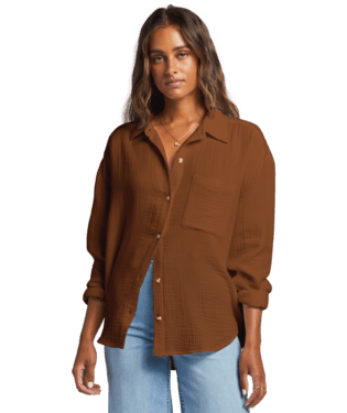 BRIXTON Women's East Side Boxy Long Sleeve Button Down Whitecap