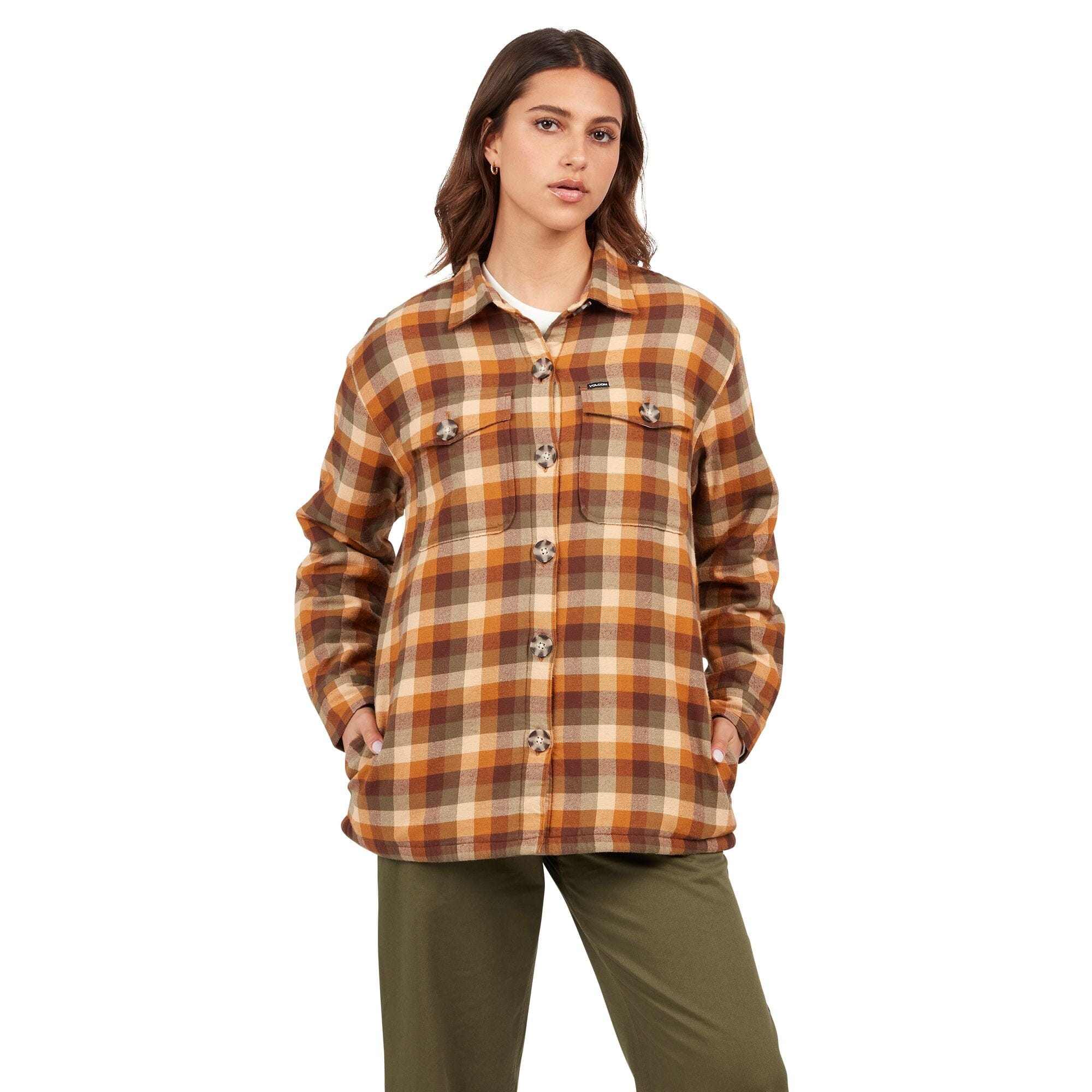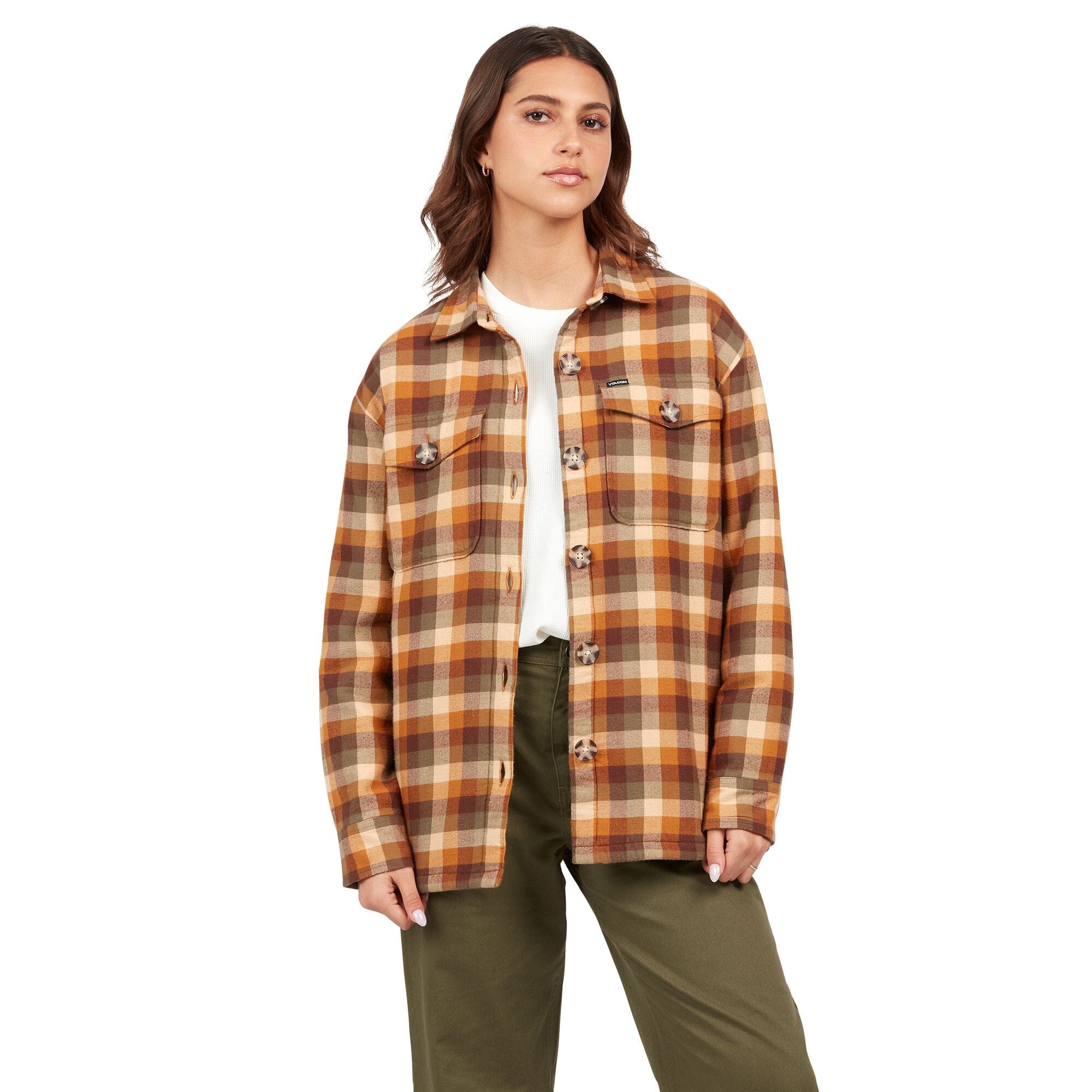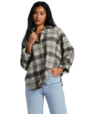 VOLCOM Women's Plaid To Meet U 2 Long Sleeve Shirt Dark Grey