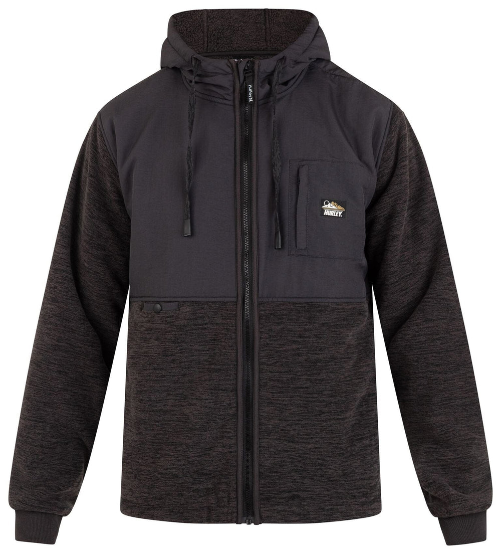 The Hurley Huron Burrito Full Zip comes deluxe with heathered heavyweight sherpa, full zip hoodie, side welt pockets, and woven nylon blocking.