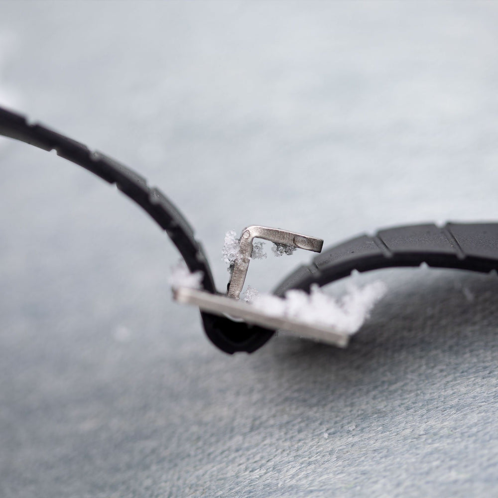 Quick Tension Tail Clip - The Quick Tension Tail Clip is a lightweight tail clip system designed to fit all 2016 and newer Jones splitboards (except Discovery). Jones splitboards have a notch cut into the tail of both skis that allows the Quick Tension Tail Clip to simply slide into the notch and secure the skin. The Quick Tension Clip features a durable rubber tail strap and compact metal clip.