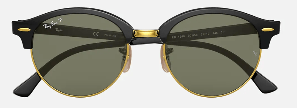 RAY-BAN Clubround Black - Green Classic G-15 Polarized Sunglasses