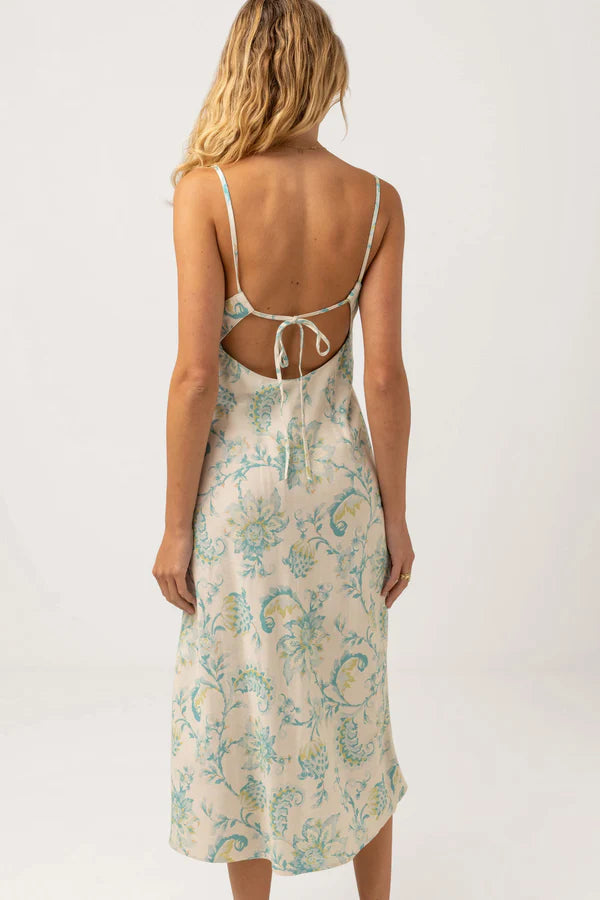 Made for dreamy days in the sun, the Cairo Bias Cut Midi Dress features a flattering bias cut silhouette, roule self straps, adjustable back tie, and gorgeous low scooped back to take you from beach to bar with ease.